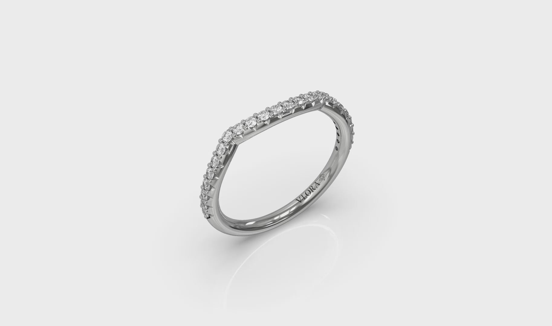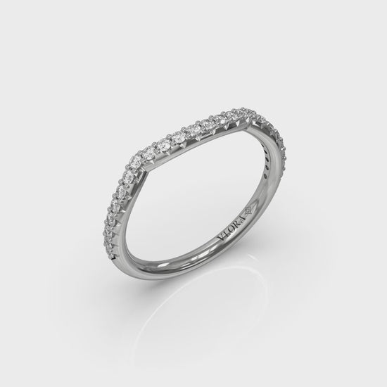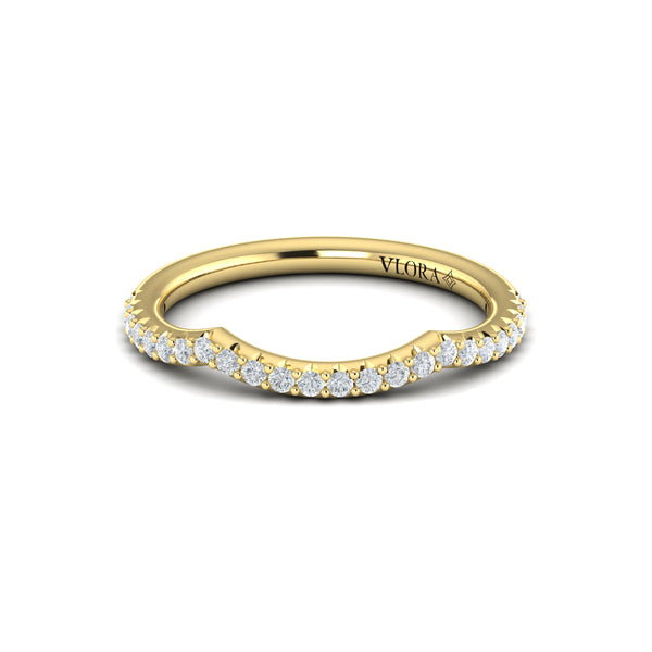 You two fit together perfectly and and so should your engagement ring and wedding band. This contour wedding band is designed to hug the elegant curves of your Woven Pave Engagement Ring. Sparkling pave diamonds accentuate the brilliance of your oval shape center diamond, making this romantic wedding band the perfect way to say forever.