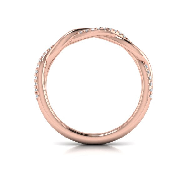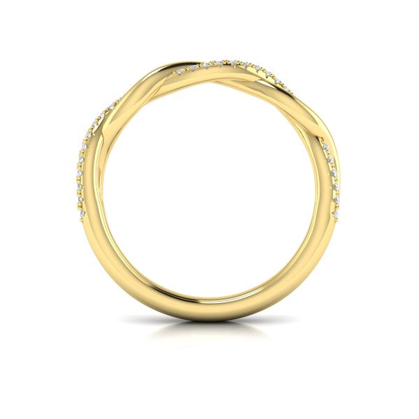 Matching Band for VSC20115. This exquisite oval diamond engagement ring highlights the elegant curves of the center diamond in a design of balance and beauty. The band intertwines gracefully, with one polished strand and one pave diamond strand. Woven details add depth, while pave diamond prongs enhance the sparkle and celebrate the unique journey of your love.