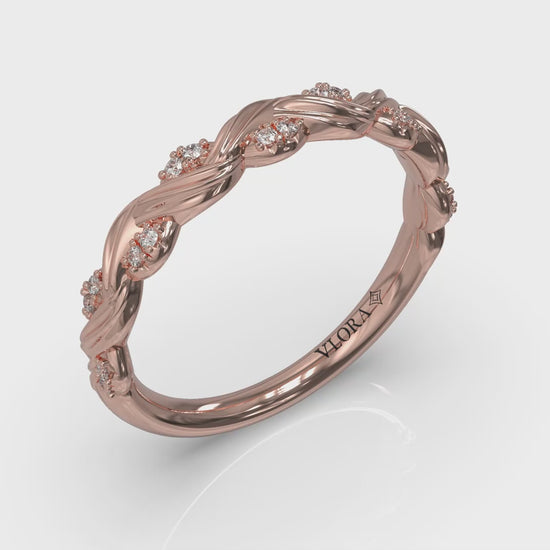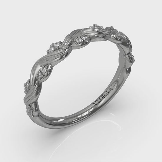Delicate vines entwine gracefully around the finger in this lyrical stackable band. Sparkling diamond pave leaves shine on every stem, capturing the magic of a love that grows stronger each and every day. A meaningful choice for an wedding band or anniversary band, this evocative design brings a touch of nature’s romance to symbolize a life alive with love.