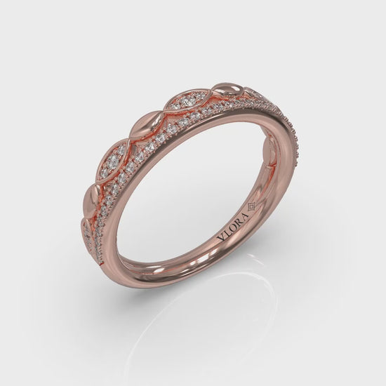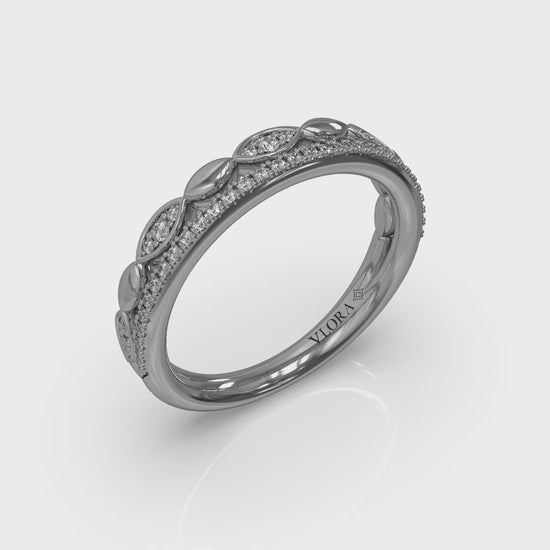 Effortlessly style you stack with this beautifully designed ring that's two bands on one. In one layer, marquise shape elements shine and sparkle, like a row of boats on a stream. On the other, pave diamonds underline everything with sparkle. Wear solo for a stacked look or add to your favorite rings to add texture and brilliance.