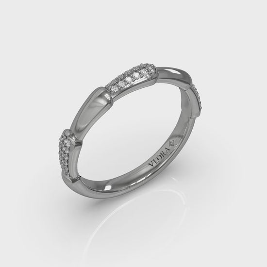 Like the scales of a mermaid's tale, shining segments overlap to form an elegantly modern stackable band. Pave diamond accents add sparkle. Designed to complement any ring stack, this versatile ring embodies the beauty of individuality coming together in brilliant harmony.