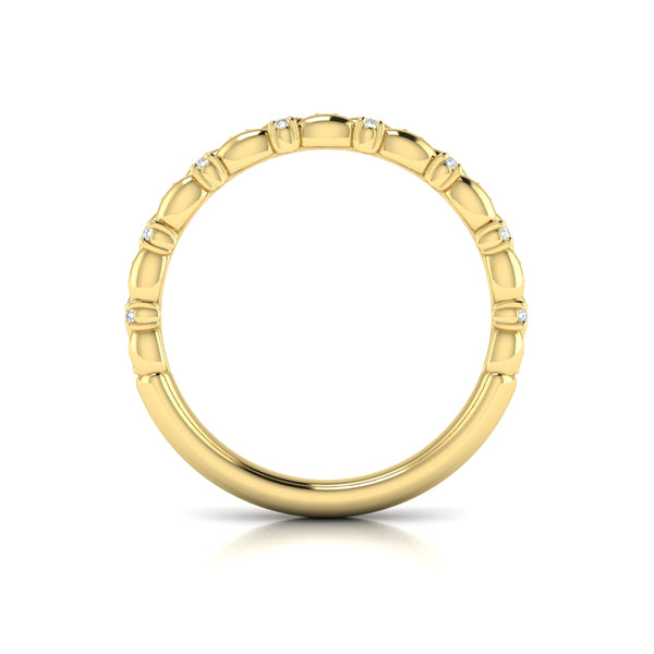 A modern classic with a touch of artistry, this diamond oval band features alternating polished gold ovals and brilliant round diamonds that create a captivating rhythm of light. Each diamond nestles perfectly between sculpted golden forms, giving the ring rich texture and dimension. Whether worn alone or paired with an engagement ring, it brings a radiant elegance that celebrates your bond with timeless beauty.